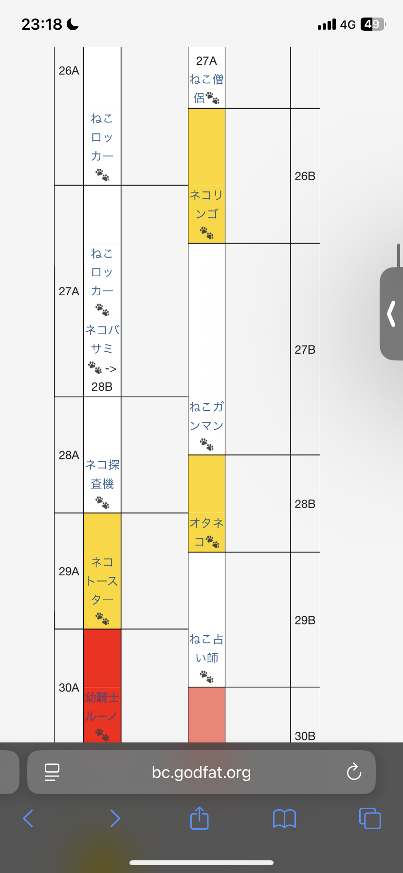 また、上のテーブルのように、3Aのねこジュラまでガチャを引いたら、最後に引いたキャラ名(ねこジュラ)を押すことで次に出る4Aのネコボクサーが1Aに来て分かりやすくなります。