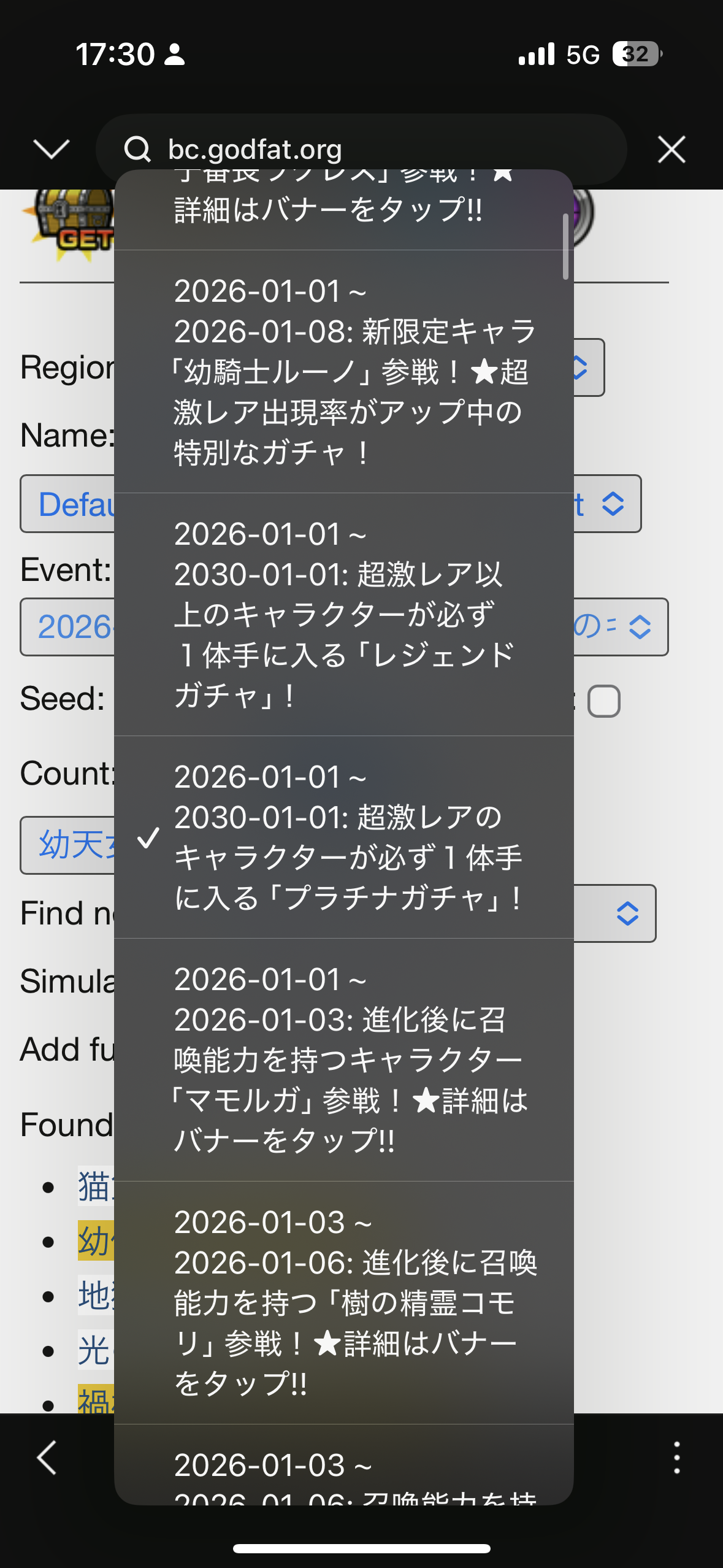 排出キャラと確率、Seedの推移などを詳しく見ることができます。