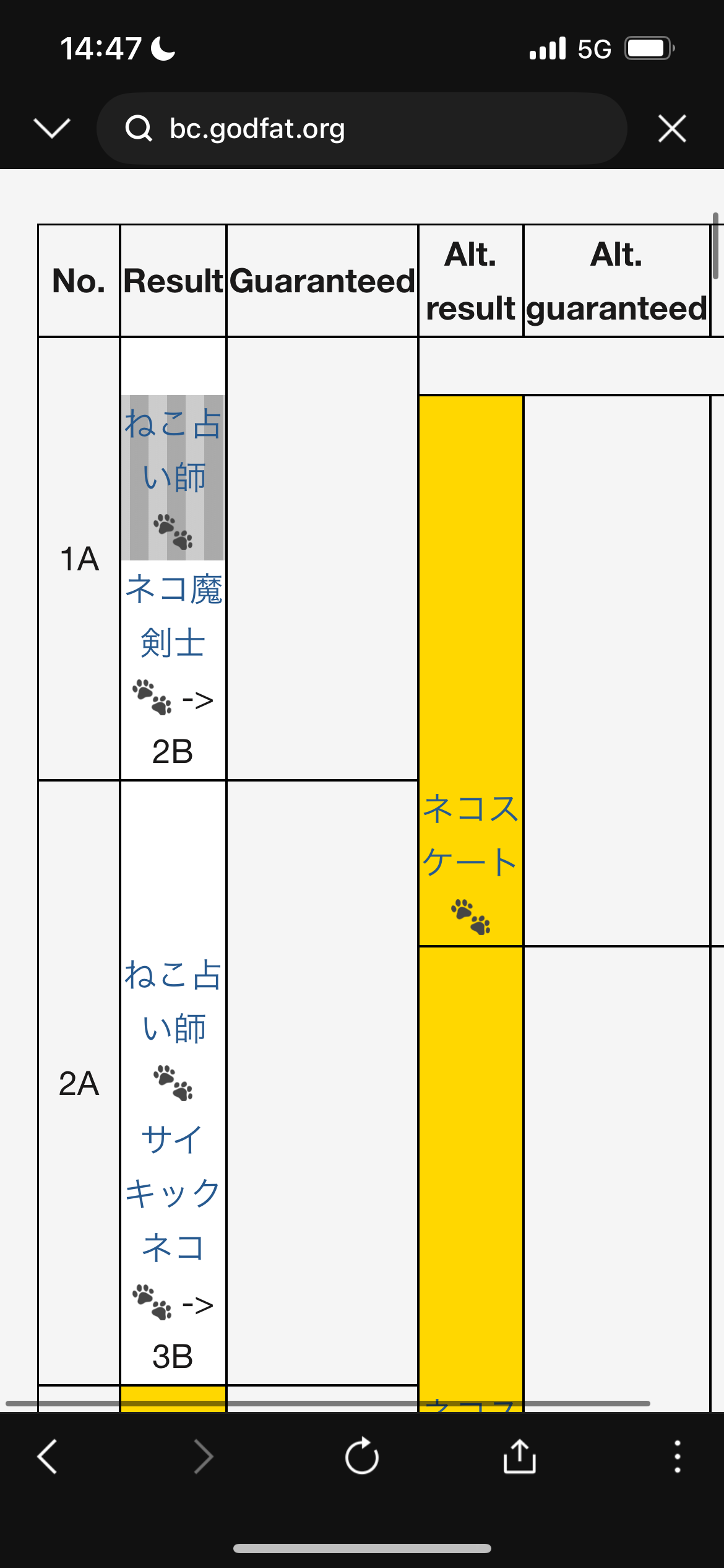 テーブル解析サイトはこちら→ Battle Cats Rolls