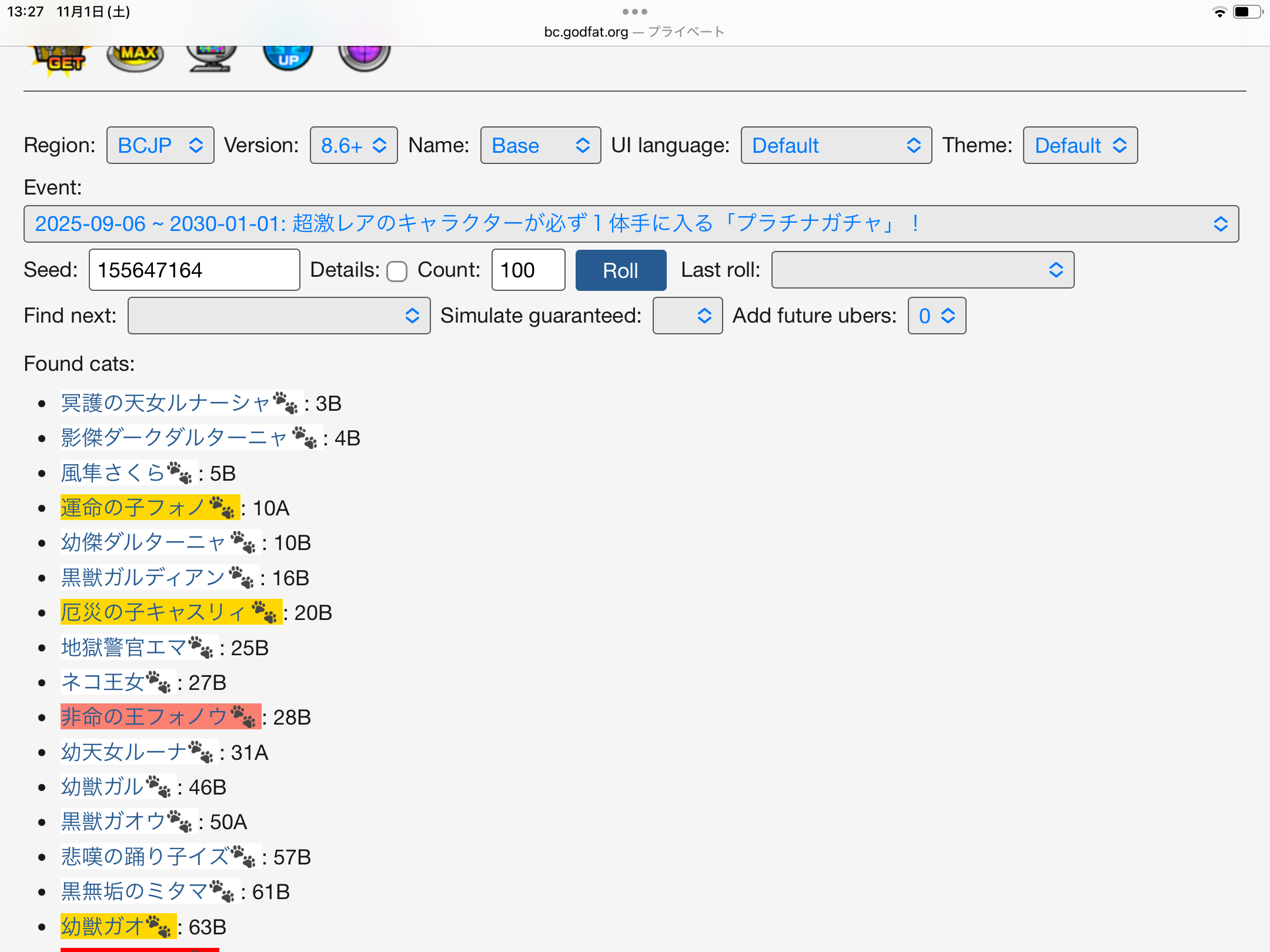 テーブル解析サイトはこちら→ Battle Cats Rolls