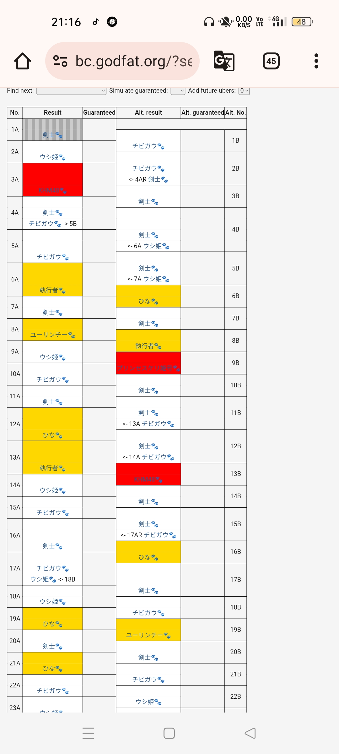 テーブルを使っていると、このテーブルのようにあと少しで良いキャラが出るのにレア被りでB列に移動してしまう、なんてことが起こると思います。
